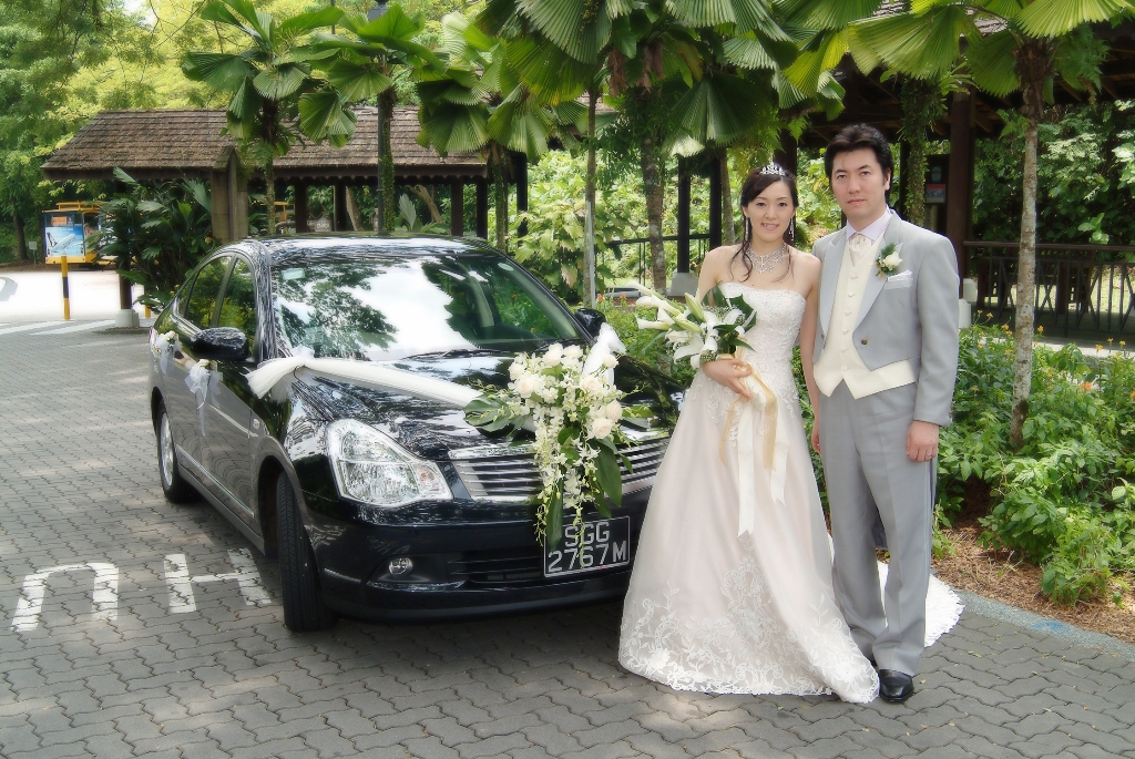 ケーキのデコレーションや車のフラワーデコレーションの雰囲気も、事前に好みの色を聞いて頂き、派手すぎず、シックで豪華で、大変満足しております。挙式直後のシャンパンパーティーでは、ケーキとシャンパンタワーの設置場所も、背景を考慮して設置して頂けましたので、ゲストに景色を楽しんで頂くと同時に、良い写真をたくさん残す事ができました。また、乾杯まで大変スムーズに進行できたお陰で、参列者の方々も楽しい雰囲気のままケーキや飲み物を楽しむ事ができました。欲を言えば、ケーキのデザインは大変気に入っていたのですが、中身が生クリームやフルーツの入ったケーキだともっと良かったと思っています・・(でも、暑いシンガポールなので、現実的には難しいのかもしれませんね。)。