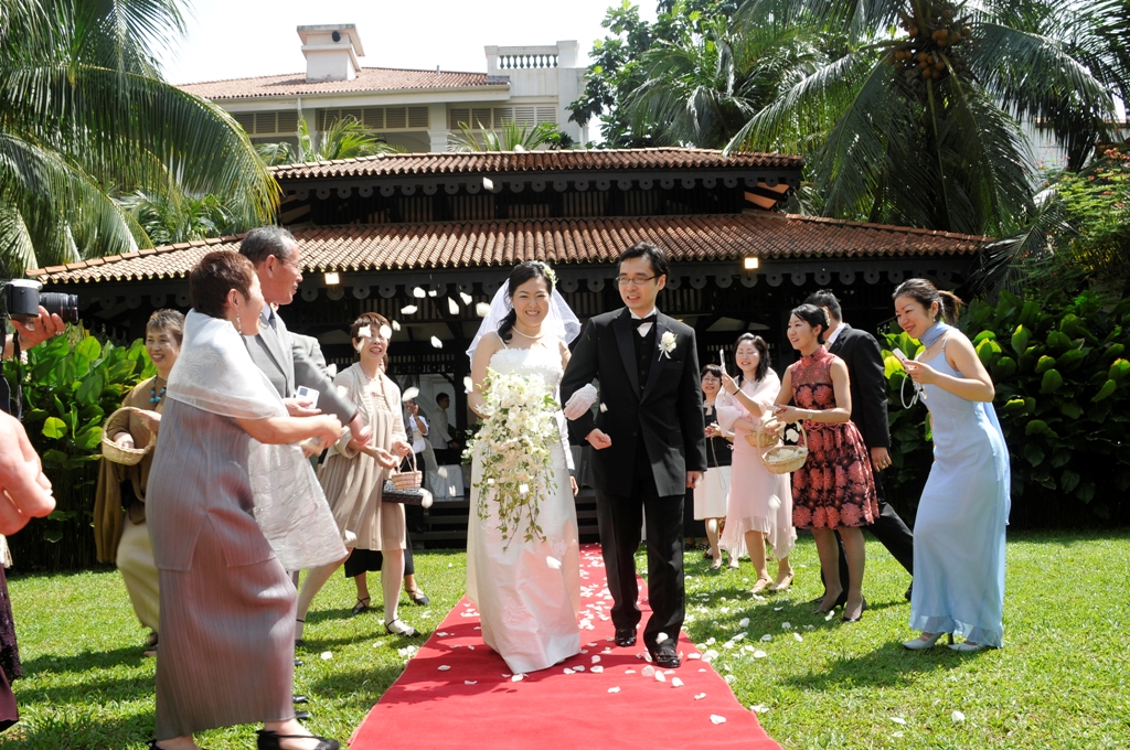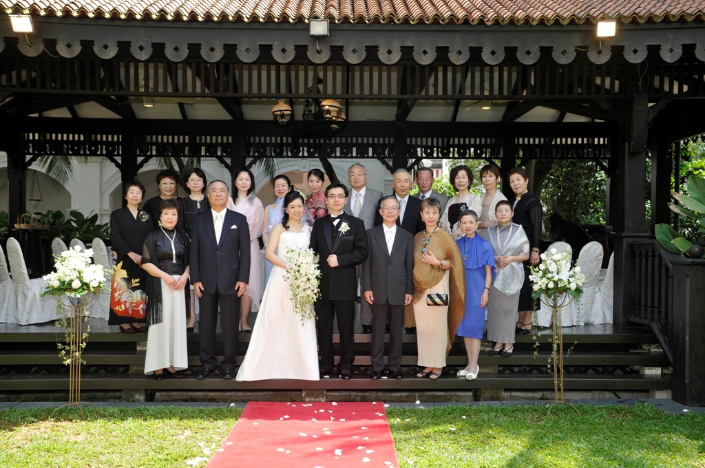 私達の周りでシンガポールで挙式した知人がおりませんでしたし、日本ではあまりシンガポール挙式の情報がありませんでした。また夫婦とも国内の挙式に参列した経験しかありませんでしたので、無事に挙式できるものか?はるばるラッフルズホテルまで参列して頂く両親を含めた親族・友人に満足してもらえるのか?等、色々な思い・不安はありました。けれども、アルバムを眺めていると、そのようなに悩んだ事も今は楽しい・笑える思い出です。本当に素晴らしい式になりました。