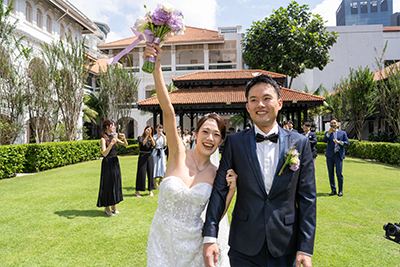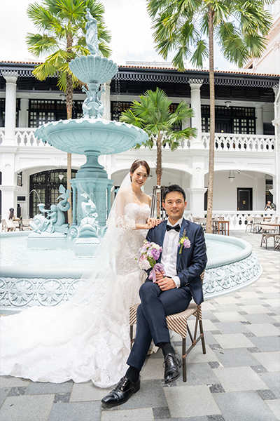 ■WOW Bridalをお選び頂いた理由 日本語でのやり取りが出来る方がいらっしゃるため。 ■WOW Bridalのサービスについて 細かい要望にご対応頂き大変助かりました。 ■野外撮影及びウエディング貸し衣裳について ラッフルズホテルでの野外撮影はとても素敵で思い出に残るものになりました。また衣装についても豊富で良かったと思います。 ■コーディネイター、ヘアーメーク、カメラマン現地スタッフの対応 細かい相談にのって頂いたり、アドバイスを頂いたりと、とても良かったです。 ■その他、シンガポールについて何でも結構です ご感想をお聞かせ下さい あったかくて南国らしい挙式ができて良かったです。 ■最後にWOWブライダルにメッセージをいただければ幸いです 渡辺さんはじめ、ご対応頂いたスタッフの皆様、大変お世話になりました。海外挙式の準備を現地で進めるにあたり少々不安がありましたが、丁寧に対応頂いたりご相談にのって頂いたおかげで、海外らしい素敵な式をあげることができました。また当日は天気にも恵まれ、ラッフルズホテルという素敵な場所での挙式に家族や友人にも喜んで頂けました。 ありがとうございました。 -------------------------------------------------------------- WOW Bridalより -------------------------------------------------------------- Y & M 様 この度は、南国シンガポールの空の下、長い歴史が刻まれたラッフルズホテルで記念すべきお二人の晴れの日のお手伝いをすることが出来ましたことを心より嬉しく思っております。また、お忙しいなかアンケートにご協力頂きまして誠にありがとうございます。頂戴いたしましたアンケートでは、温かいお言葉を沢山頂戴しましてありがとうございました。スタッフ一同、心よりお礼申し上げます。 1887年にシンガポールで設立されたシンガポールを代表する伝統的なコロニアルスタイルの優雅なホテル、ラッフルズホテルシンガポールでお二人のしあわせに満ち溢れた晴れやかな笑顔がとても印象的でございました。当日はお天気にも恵まれ、皆様に美しい思い出となりましたことを心より嬉しく思っております。どうぞ、末永くお幸せに!